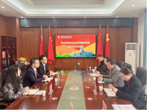 图为学院党委书记陈家群一行与贺州外国语学校座谈交流