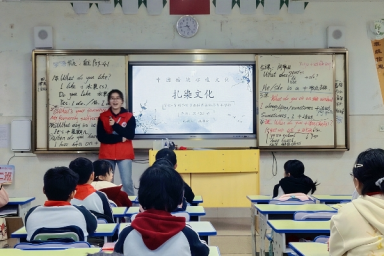 支教队员以“趣味手工”为引,带领孩子们用彩纸折出灵动的《蜗牛》,指尖翻飞间,童真与创意悄然绽放。绘本故事时间,《我喜欢自己》带孩子们走进温情世界,学会欣赏与拥抱自我。自然科普课孩子们见证《会呼吸的火山》喷薄而出的奇妙。中国城市环节以《一起去陕西》为例,让孩子们领略三秦大地的深厚底蕴。非遗课上,支教队员以《扎染文化》为媒,蓝白相间的方巾上,非遗技艺如流水般晕染,孩子们在浸染与捆扎间触摸千年传承的温度。