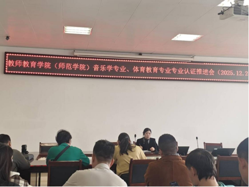 为扎实推进音乐学专业、体育教育专业专业认证工作,确保专业建设质量与人才培养水平再上新台阶,教师教育学院(师范学院)于2025年12月2日组织召开专业认证推进会,相关专业负责人及骨干教师参会。